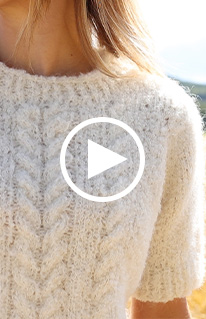 The pattern uses both long and short needles; start with the length which fits the number of stitches and change when necessary. Cables are worked on the front piece and stocking stitch on the rest of the round.
