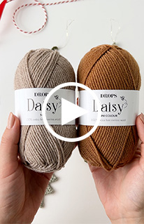 DROPS Daisy lõngast kootud jõulukaunistus lehega tammetõru jõuludeks